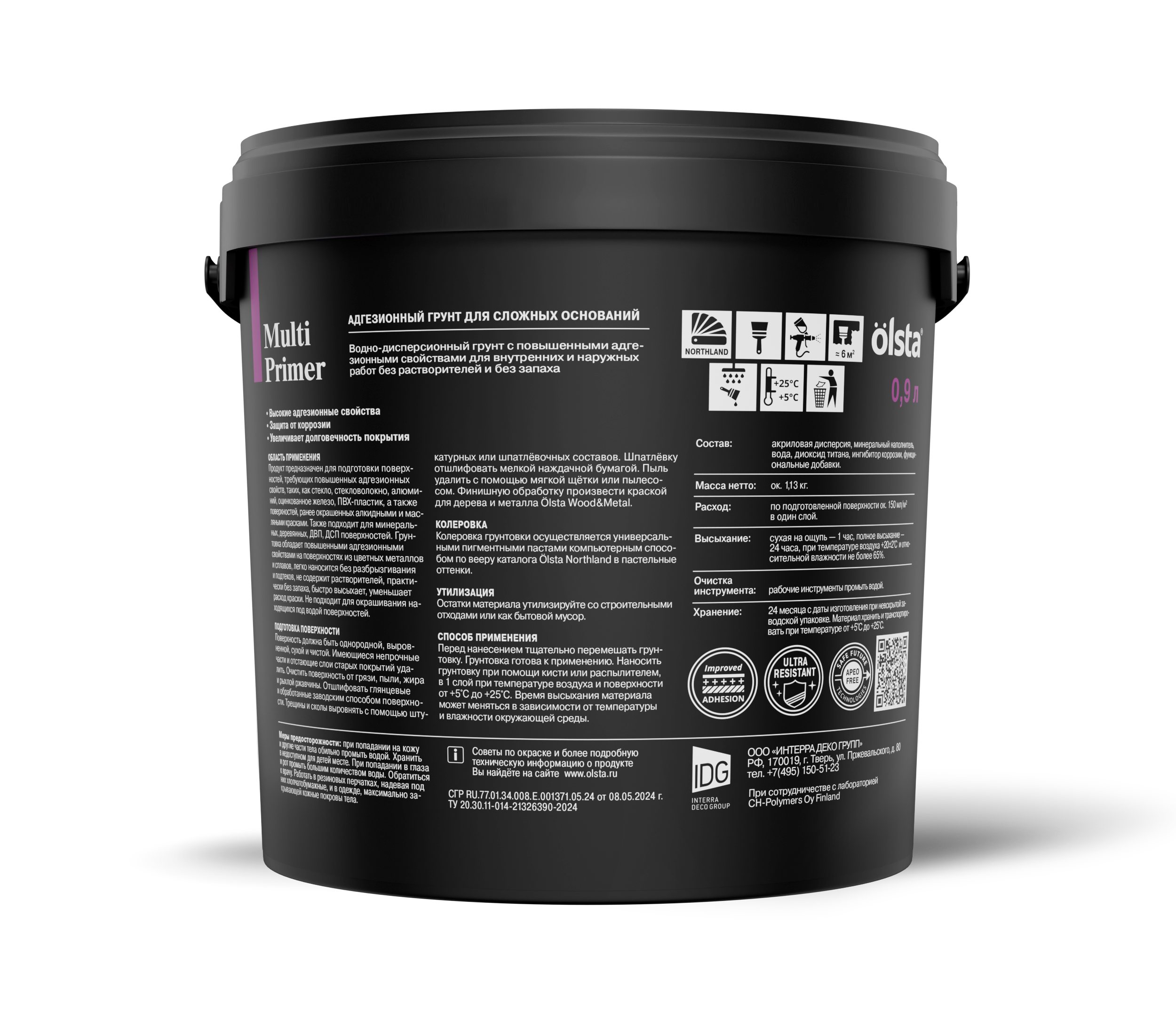Адгезионный грунт MULTI PRIMER  -  Грунт для подготовки поверхностей, требующих повышенных адгезионных свойств, таких, как стекло, стекловолокно, ПВХ-пластик, алюминий, оцинкованное железо, а также поверхности, ранее окрашенные алкидными и масляными красками. Также подходит для минеральных, деревянных, ДВП, ДСП поверхностей. от бренда OLSTA с доставкой по России!