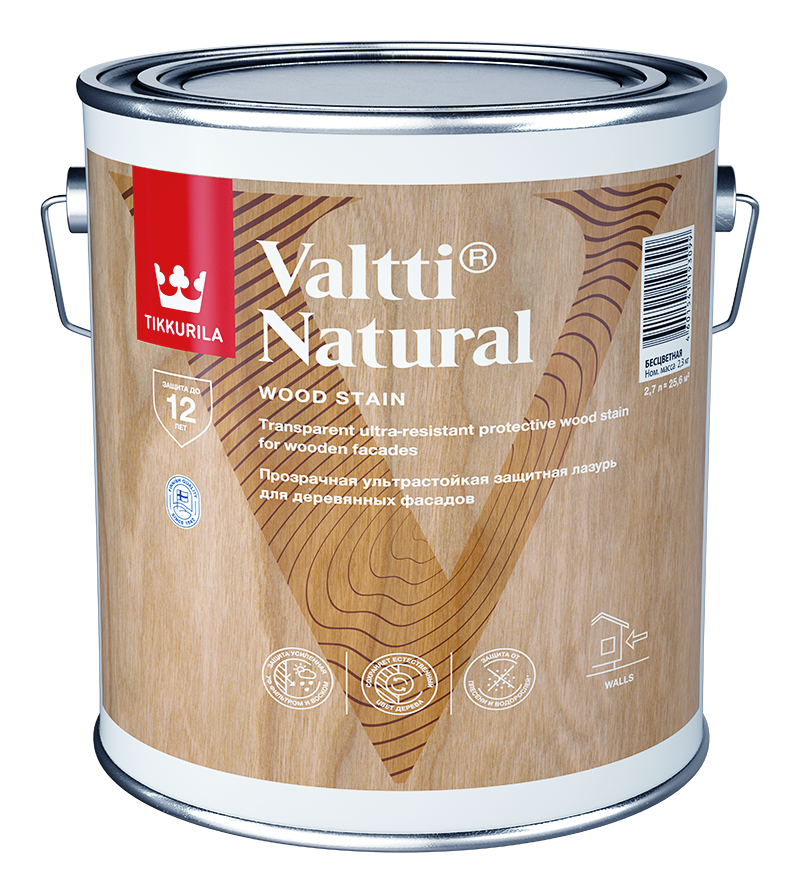 Антисептик лессирующий VALTTI NATURAL (п/гл)  -  Ультрастойкая прозрачная фасадная лазурь. Содержит воск и специальный УФ- фильтр, надолго сохраняет естественный цвет дерева без колеровки от бренда Tikkurila с доставкой по России!