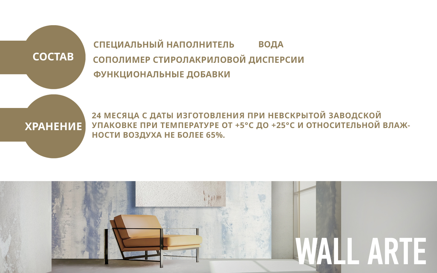 Декоративное покрытие с эффектом бетона WALL ARTE - Декоративное покрытие DECORAZZA WALL ARTE Откройте дверь в мир современного интерьера с помощью декоративного покрытия DECORAZZA WALL ARТЕ — идеального решения для стиля ЛОФТ. Это премиальное покрытие создает уникальный эффект бетона, добавляя вашему пространству изысканную фактурность и глубину. Благодаря своей высококачественной структуре, оно легко трансформирует стены, делая их центром внимания и подчеркивая индивидуальный вкус владельца. DECORAZZA WALL ARТЕ идеально подходит для создания атмосферных и стильных интерьеров, где каждый элемент важен и уникален. Применяйте его в жилых пространствах, офисах или кафе, чтобы придать дизайну современный, но в то же время урбанистический и теплый оттенок. Это покрытие не требует сложных навыков в нанесении и обеспечивает долговечность и устойчивость к износу, обеспечивая элегантный вид вашего помещения на долгие годы. от бренда Decorazza с доставкой по России!