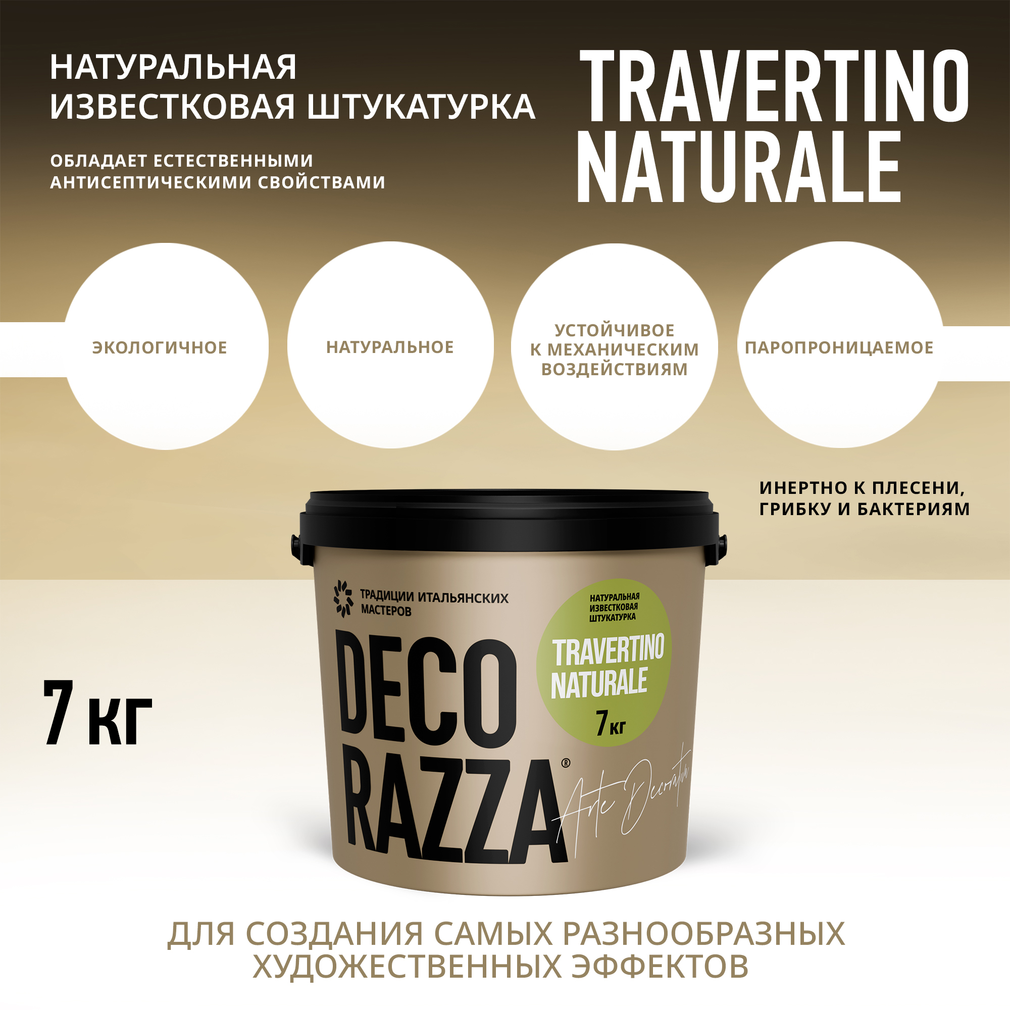Декоративное покрытие Travertino naturale - Штукатурка для создания декоративного покрытия без швов и соединений на стенах, потолках, колоннах, фризах и других архитектурных деталях внутри помещений от бренда Decorazza с доставкой по России!