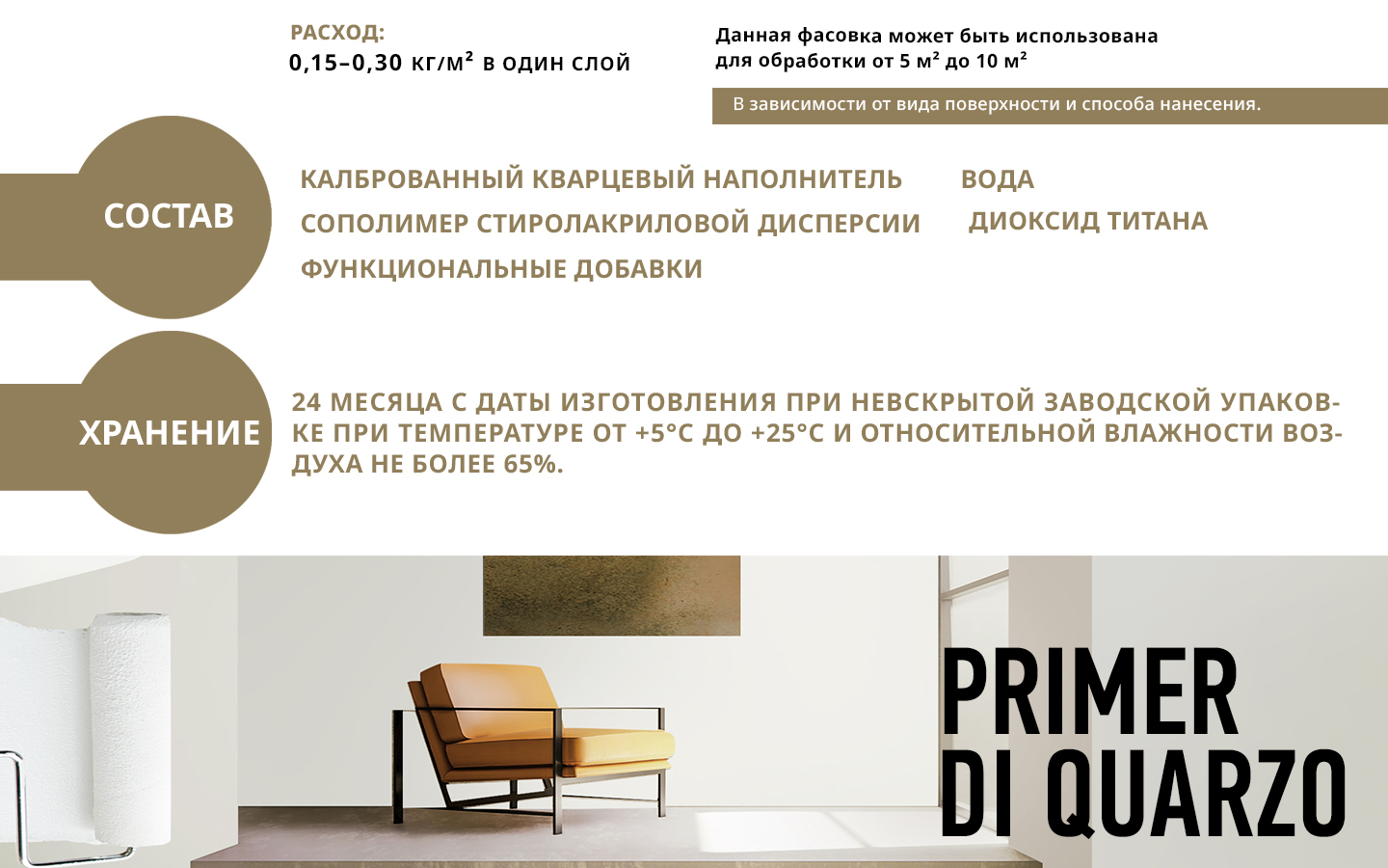 Грунт с кварцем под фактуры PRIMER DI QUARZO из наличия или под заказ, с доставкой или самовывозом со склада.