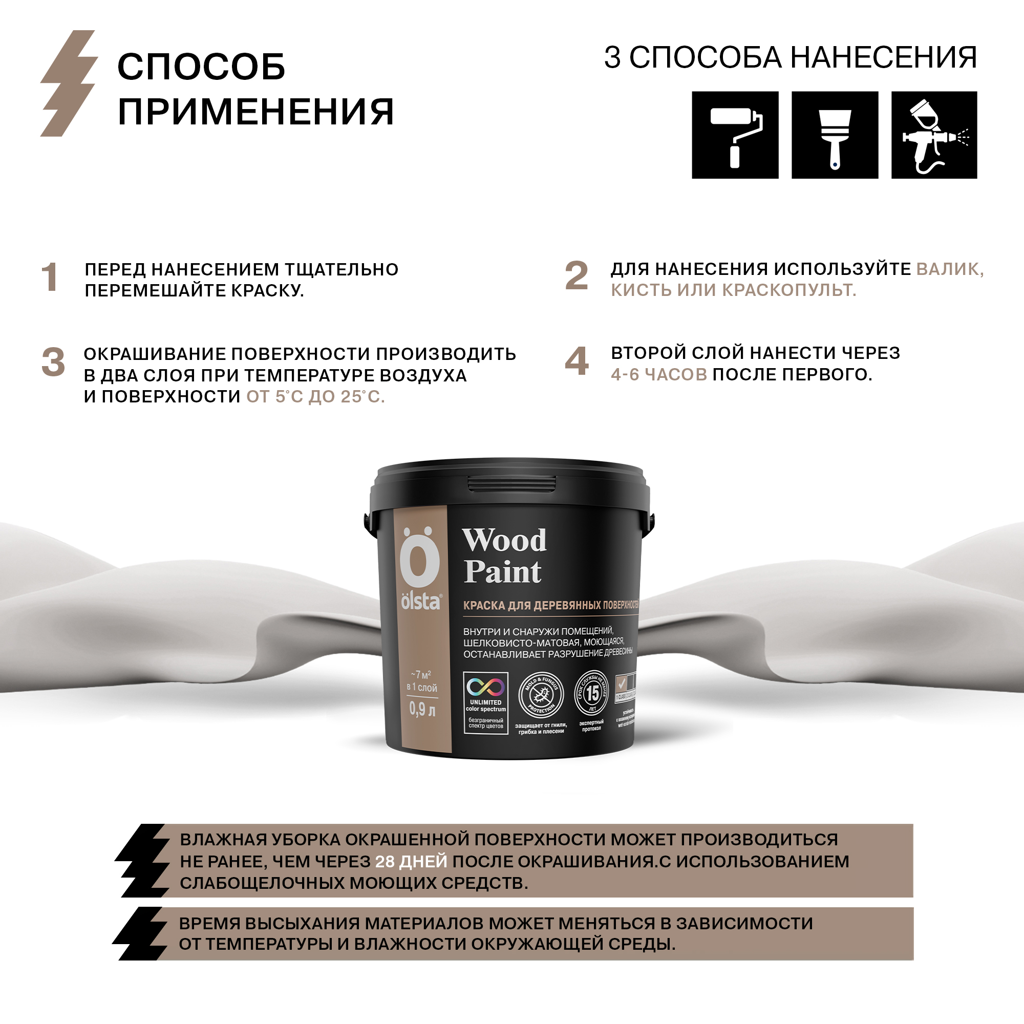 Краска для деревянных поверхностей Wood paint - Высококачественная краска для наружных и внутренних работ по дереву от бренда OLSTA с доставкой по России!