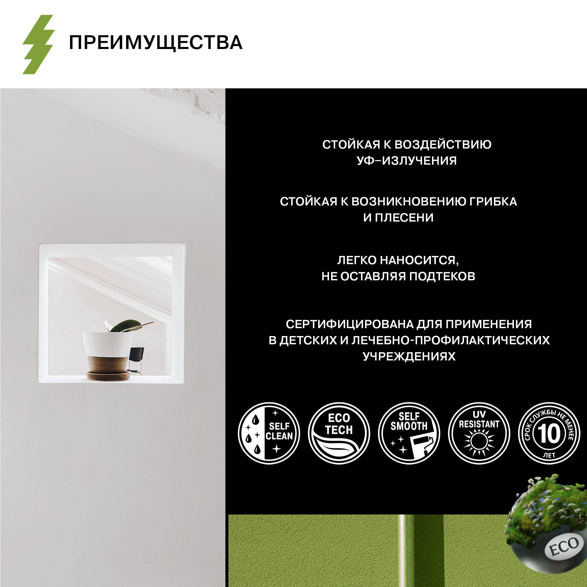 | СОСТАВ | Вода, акриловая дисперсия, силиконовая эмульсия, диоксид титана, мраморный наполнитель, функциональные добавки |