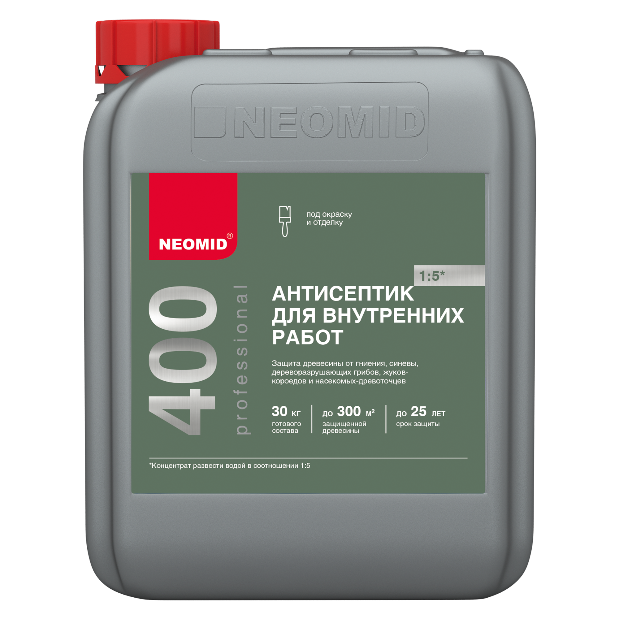 NEOMID 400 – новое высокоэффективное деревозащитное средство на водной основе для внутренних работ. Предназначено для усиленной защиты древесины на срок до 25 лет от гниения, поражения дереворазрушающими и деревоокрашивающими плесневыми грибам.