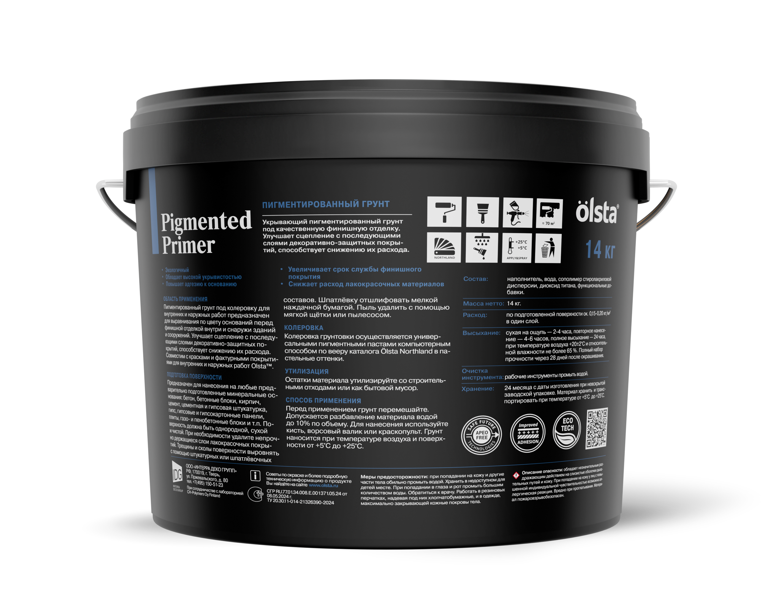 Пигментированный грунт под колеровку для внутренних и наружных работ предназначен для выравнивания по цвету оснований перед финишной отделкой внутри и снаружи зданий и помещений. Улучшает сцепление с последующими слоями декоративно-защитных покрытий, способствует снижению их расхода. Совместим с красками и фактурными покрытиями для внутренних и наружных работ Olsta™.